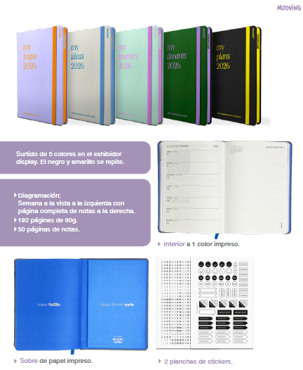 Agenda Mooving Notes, semana a la vista, 15x21 cm