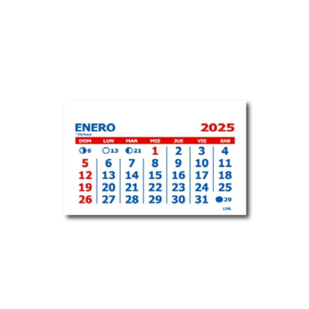 Almanaque mensual de 16x10cm impreso a dos colores en papel obra de alta calidad puntillado para una fácil extracción de sus hojas. Ideal para la fabricación de calendarios, imánes y otros productos de merchandising.